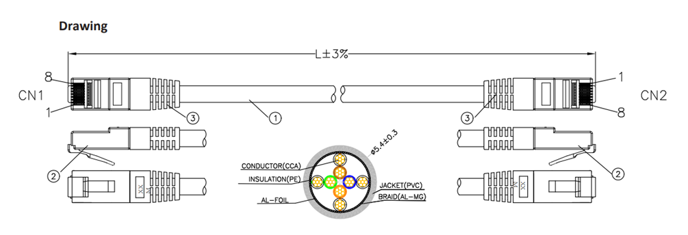 Cat 5e S/FTP-Patchkabel, verschiedene Längen und ein RJ45-Stecker, (8P8C), zwei gegabelte vergoldete Kontakte. Weitere Informationen zu den Spezifikationen finden Sie über den Link zu unserer Website.