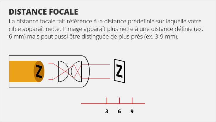 5. Profondeur de champLa profondeur de champ (depth of field, DOF) décrit la distance entre la pointe de la sonde et l’objet le plus éloigné qui apparaît clairement focalisé (maximum). La DOF est exprimée par une distance minimale et maximale, où l’image apparaîtra floue si la pointe est plus proche que la valeur minimale. La machine testée dictera la DOF appropriée de sorte qu’une caméra appropriée puisse être choisie en fonction de la profondeur des composants contrôlés.