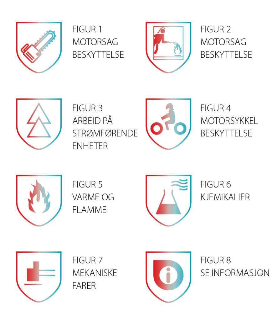 Eksempler på piktogrammer som brukes på sikkerhetssko og hva de betyr: